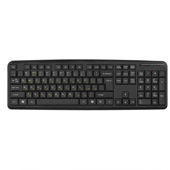 Классическая раскладка. Полноразмерные клавиши Enter и Backspace. Регулируемый угол наклона. Влагозащищенная от брызг. Для работы не требуются драйвера.